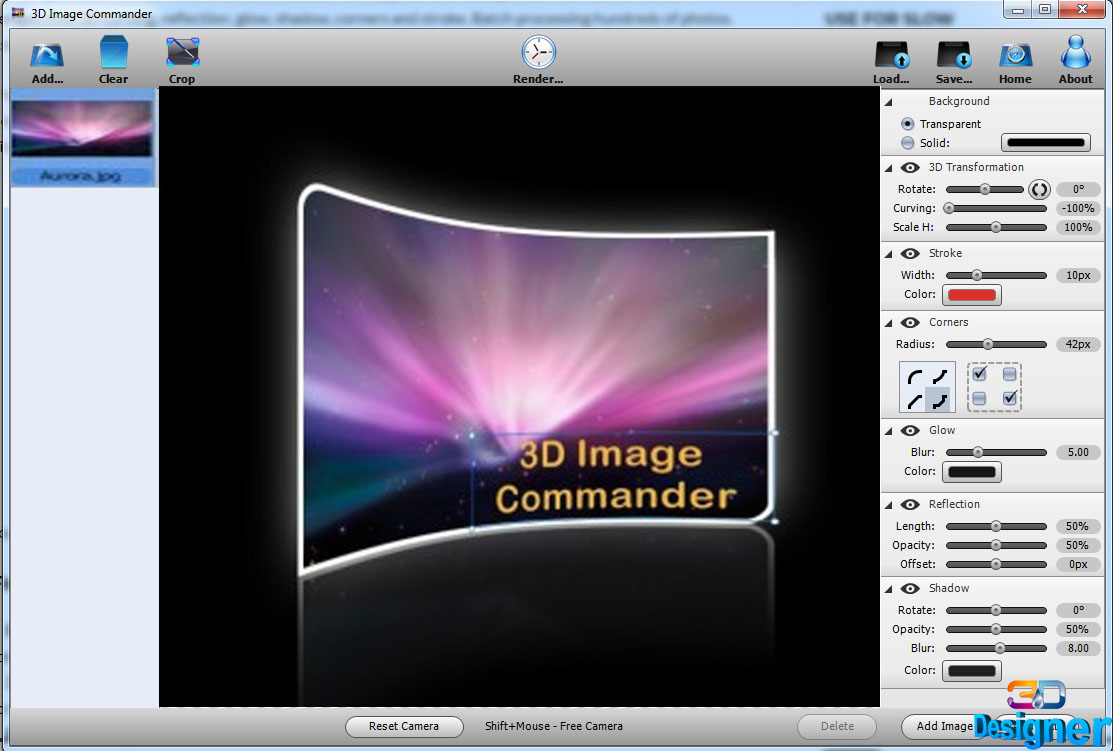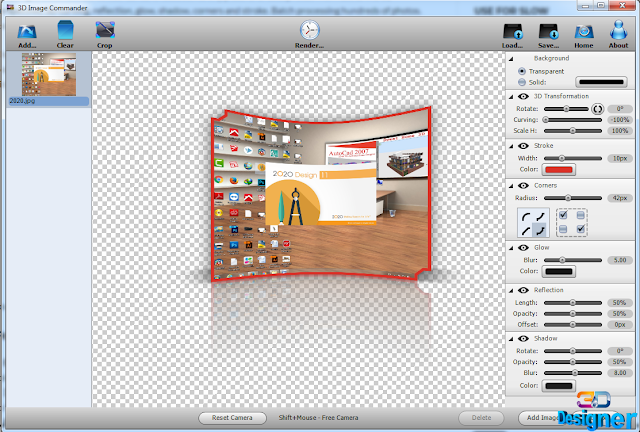 • Editing: 3D Image Commander contains different apparatuses to control the picture, for example, editing, obscure and shading. It is additionally conceivable to characterize, among others, the edges of slant and bend of the photograph.
