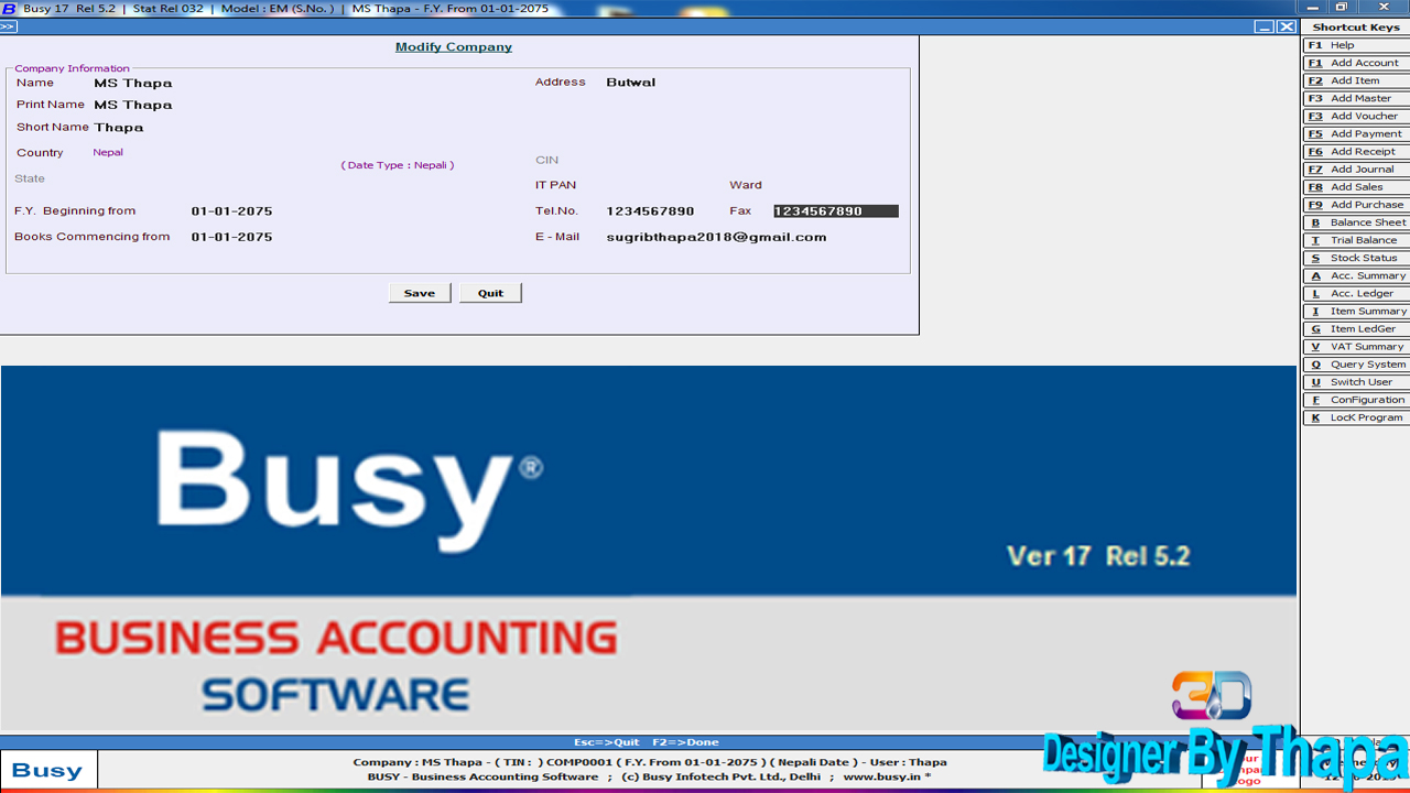 Programming Full Name: Busywin 17 GST Accounting