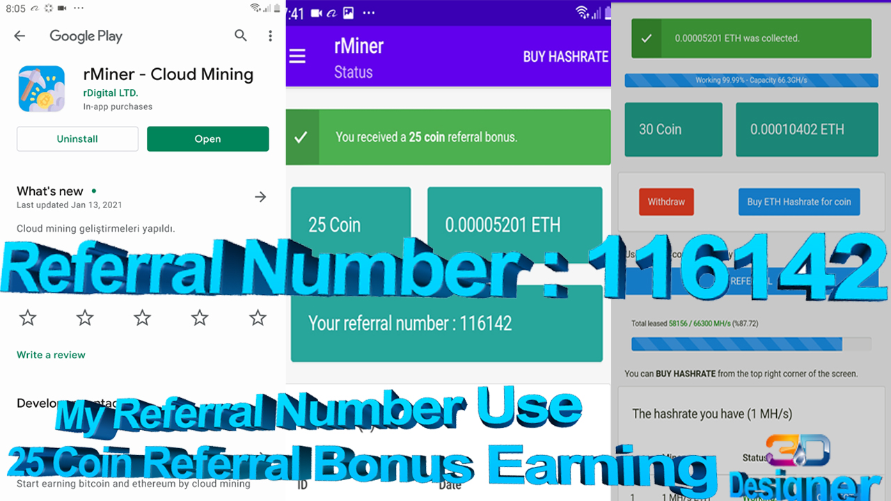 My Referral Number Use 25 Coin Referral Bonus Earning